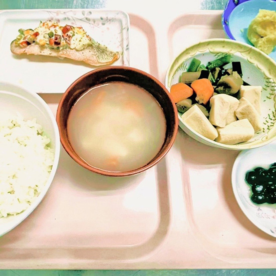美味しく安全な食事を安心して、楽しみながら召し上がっていただけるように患者さん1人1人に合わせたアレルギー対応等、食事提供を行っています。