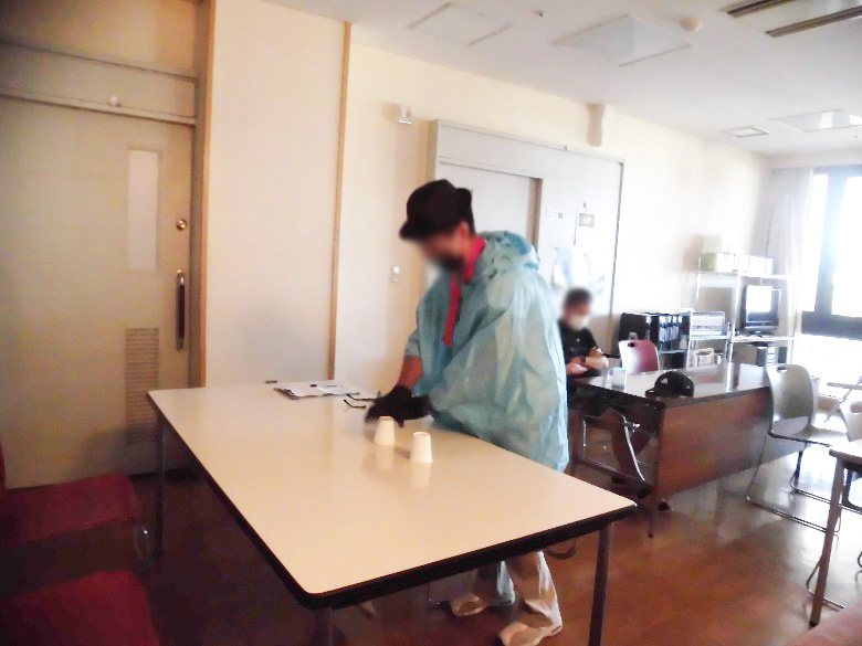 ブルーシートを敷き、面白い目隠しをして、3回まわってから木刀を握りしめスイカ割りを開始!周囲のメンバーさんや技能実習生の方の掛け声を受けながら楽しんで行うことが出来ました。見事にスイカを割ることが出来、皆で美味しくいただきました。澤村さんはじめ、園芸クラブのメンバーが丹精込めて作った園芸のスイカは絶品でした!